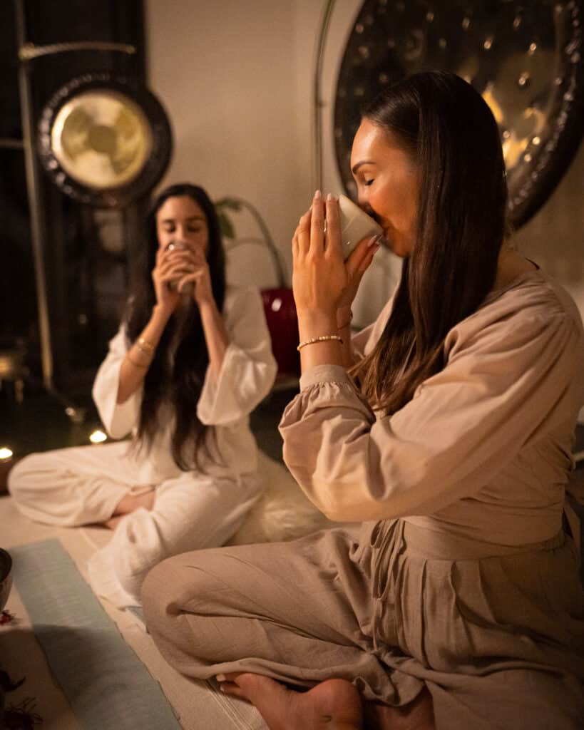 Each ceremony is unique and depends on the facilitators. You can expect elements of movement, sound healing, singing, and occasionally, yoga nidra. All ceremonies include sharing of sacred cacao, followed by a deeply relaxing and meditative sound journey to enhance and integrate the heart-opening experience.